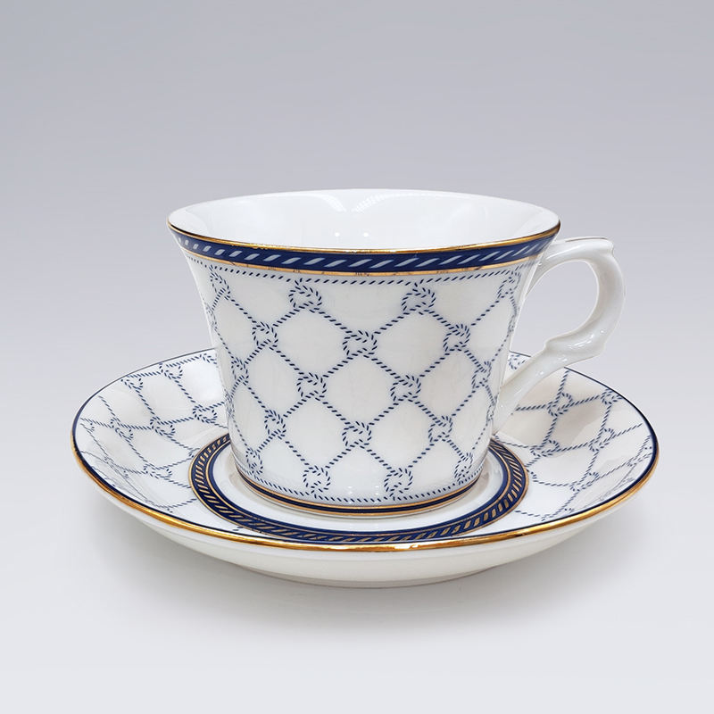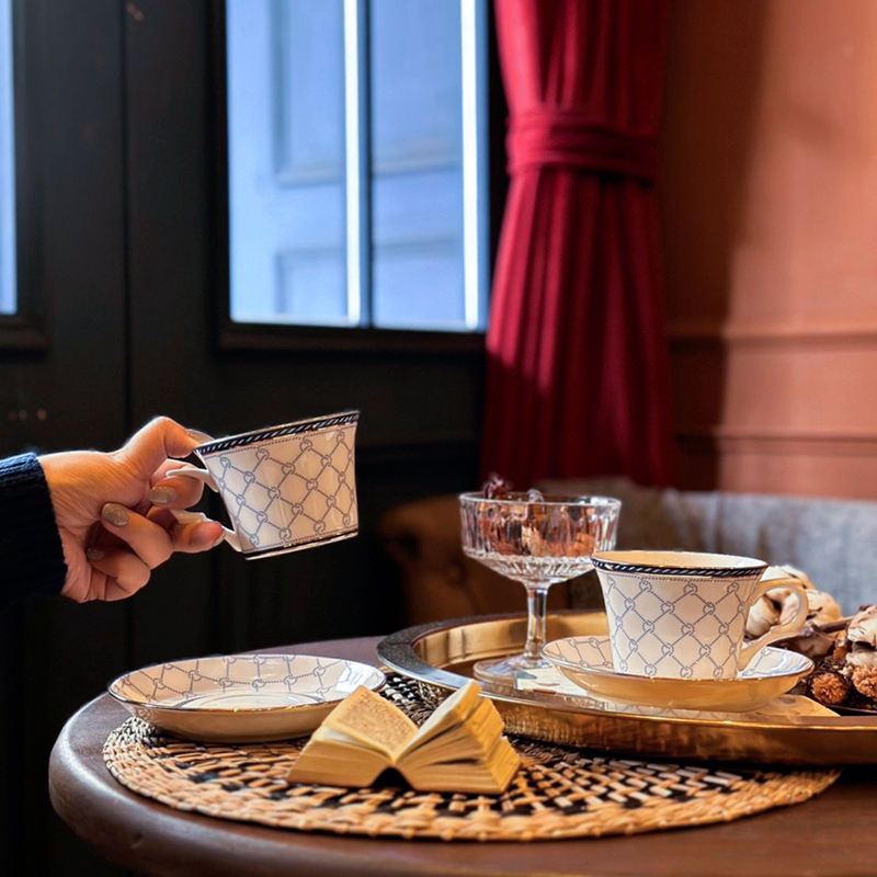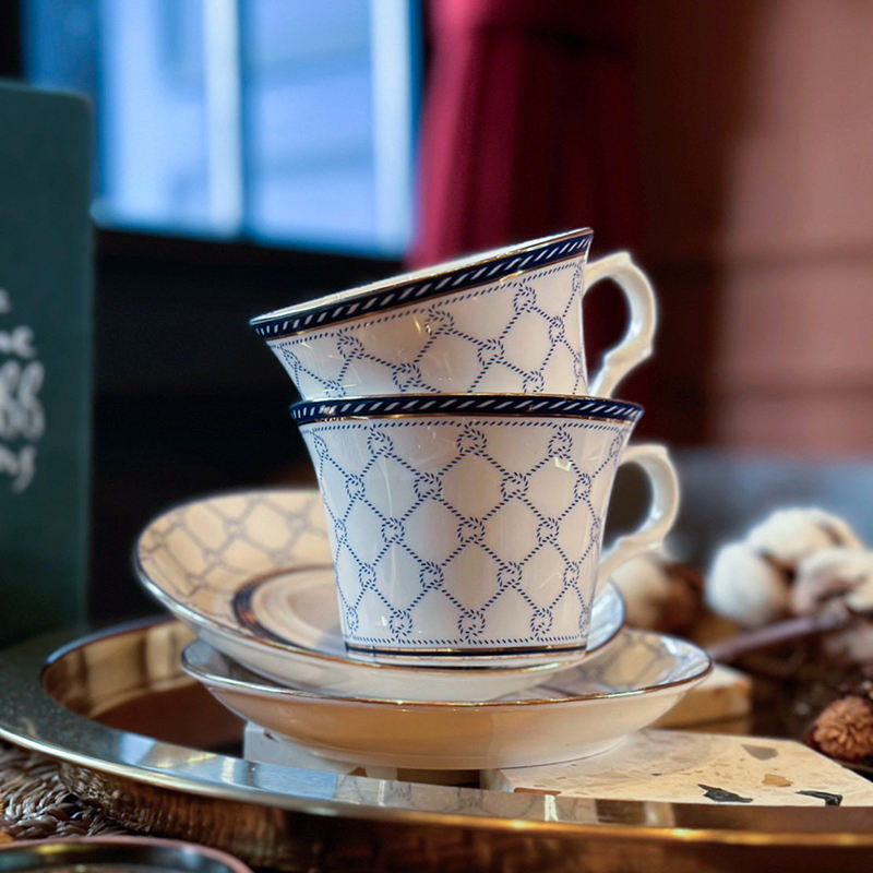 Luxury Fine Bone China Water Transfer Printed Espresso Cup Set with Elegant Rope Texture-Promotional Gift