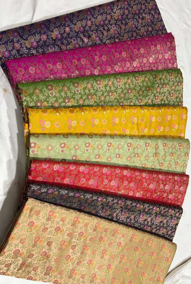 Luxury Floral Brocade Silk Fabric with Jacquard Weave, Rich Multicolor Woven Textile for Apparel & Decor