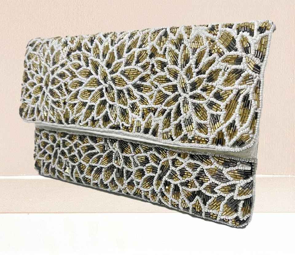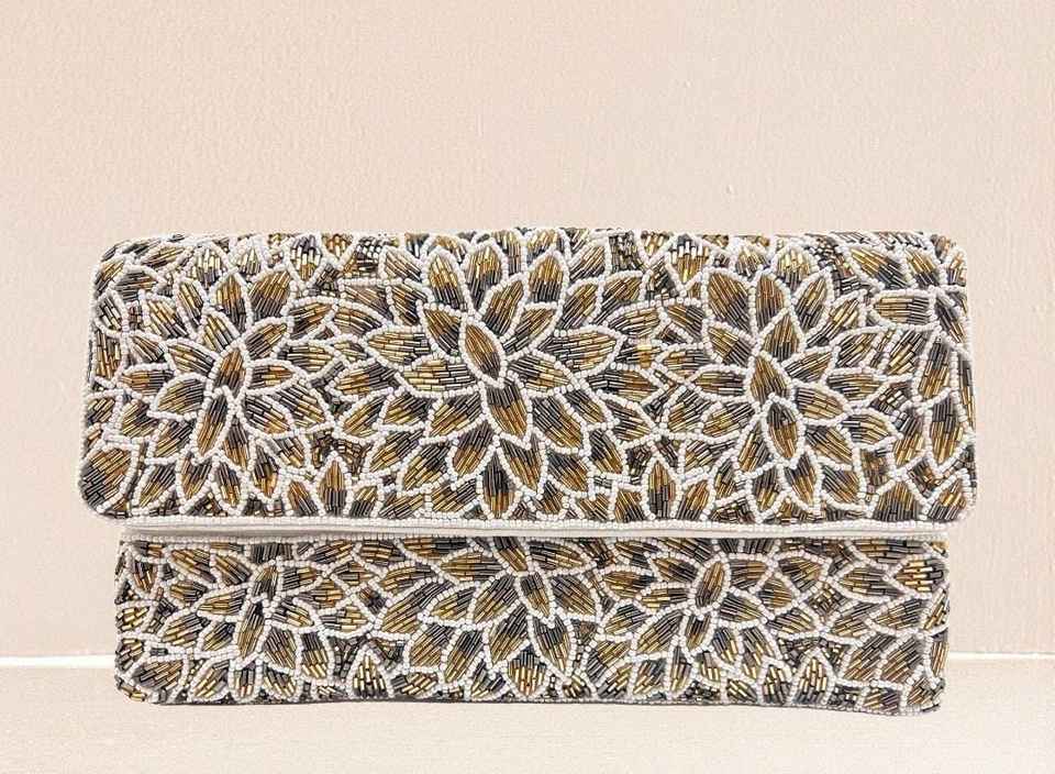 Luxury Floral Burst Clutch Bag Crystal Rhinestone Handbag with Striped Envelope Pattern for Party Evening Use Crossbody Style
