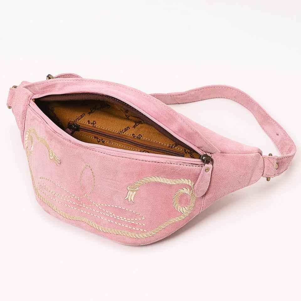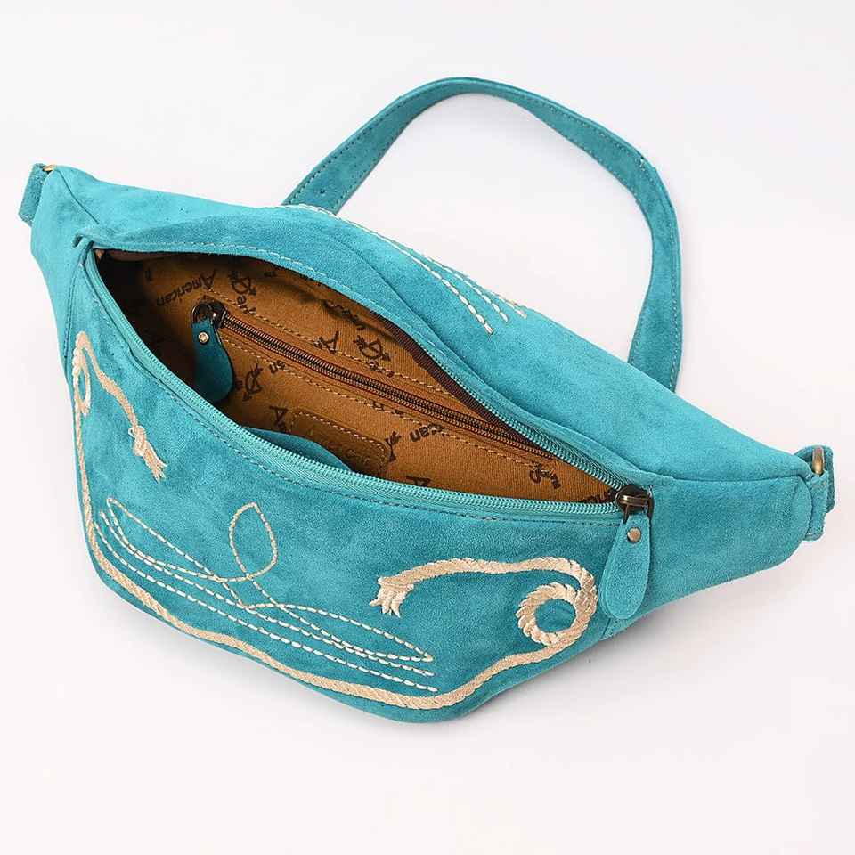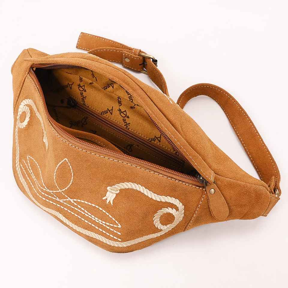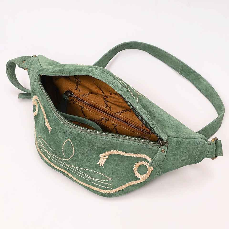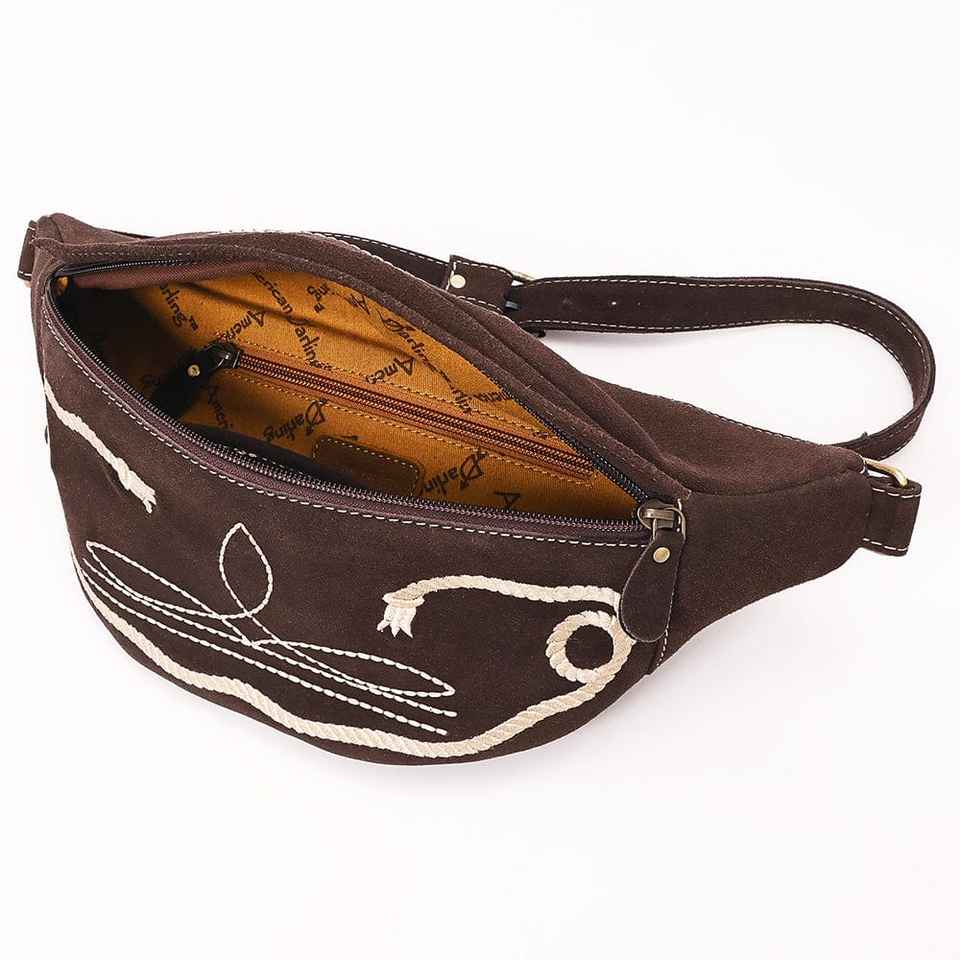 Luxury Floral Suede Leather Bum Bag Western Sling Design with Zipper Closure Handtooled Ready Stock for Girls
