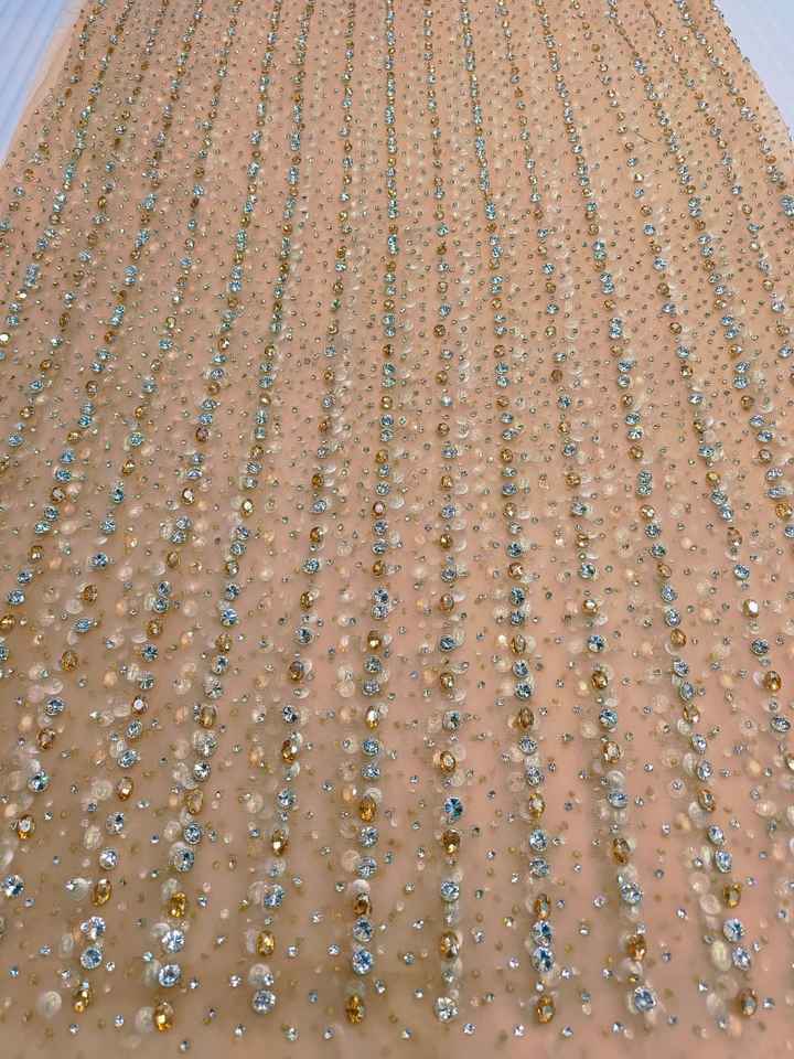 Luxury Traditional Elegant Floral Tulle Beaded Handmade Custom Colors Dress Fabric High Quality Mesh Lace Rhinestones