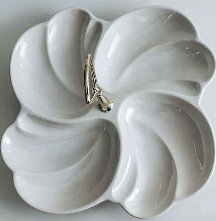 Luxury Flower Shape 4 Compartment Ceramic Storage Tray White Color Stylish Home Kitchenware Accessories Food Dry Fruit Organizer