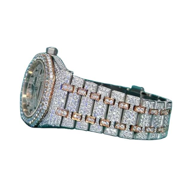 Luxury Classic Fashion Digital Full Diamond Rose Gold Quartz Movement Stainless Steel Band Business Iced Moissanite Watch Box