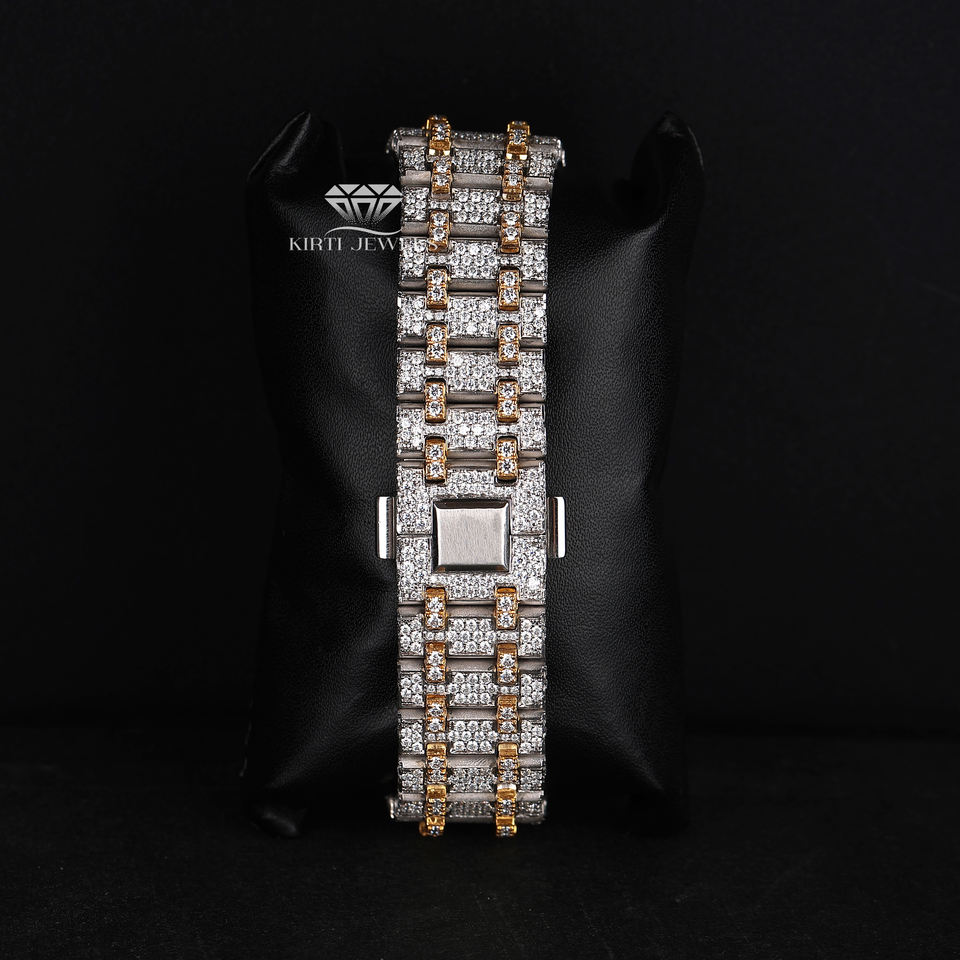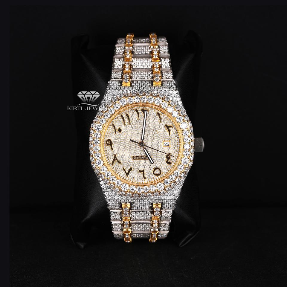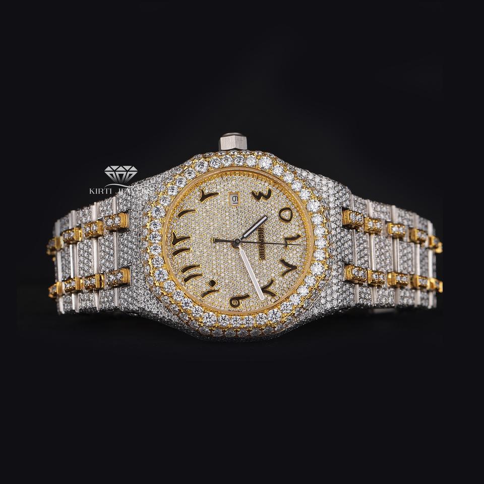 Luxury Full Iced Out Moissanite Diamond Arabic Dial Watch Yellow White Two Tone Hip Hop Stainless Steel Men Custom WristWatch
