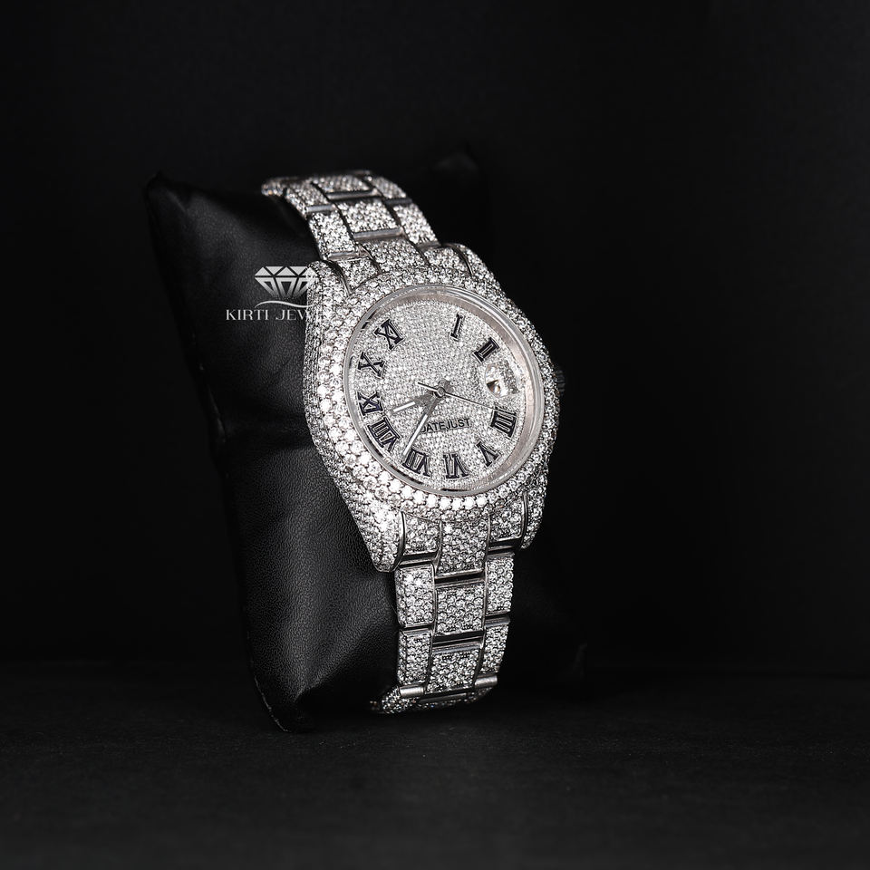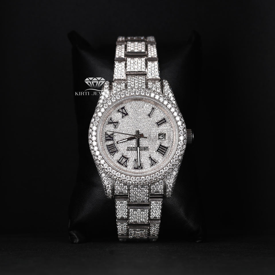 Moissanite Roman Dial White Tone Watch