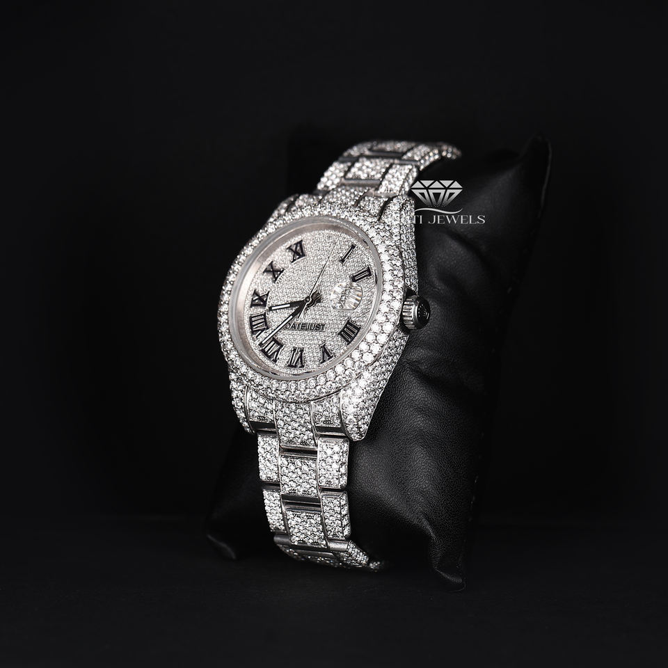 Keywords:Moissanite Roman Dial White Tone Watch