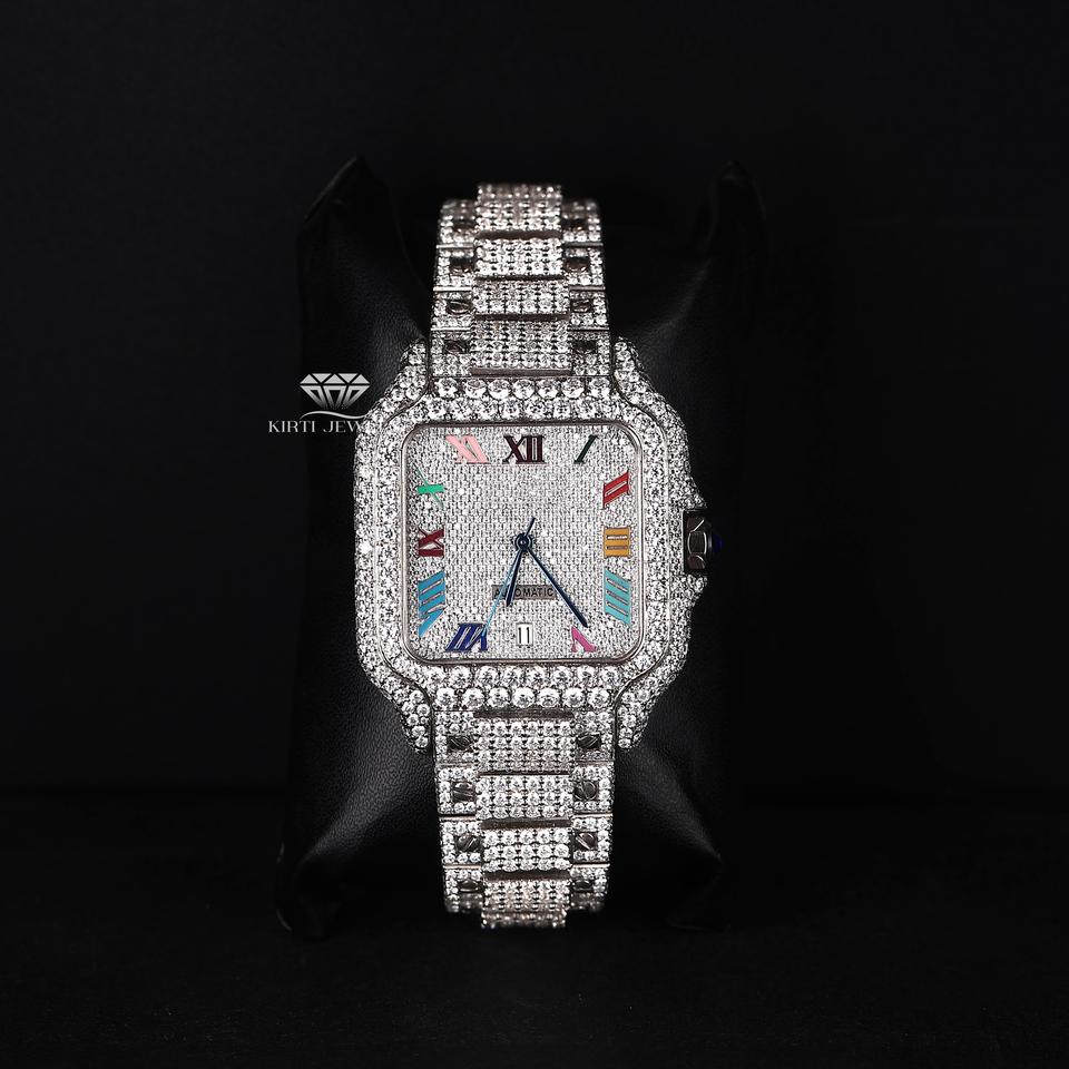 Product Name:Rainbow Dial White Tone Moissanite Automatic Watch