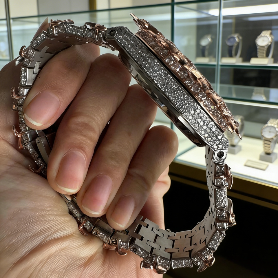 Luxury Full Inlaid Moissanite Watch VVS High Quality Super Shiny Hip Hop Watch Passes Diamond Tester