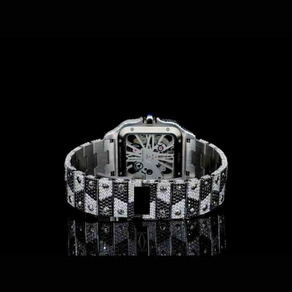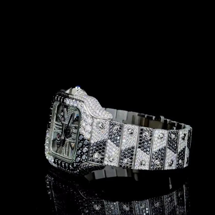 Luxury Fully Automatic Moissanite Watch Black White ICED Hiphop/Bust Style Square Case Stainless Steel Band Fashion Business