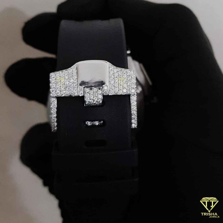 Luxury Fully Automatic VVV Moissanite Diamond Iced Quartz Analog Watch 41mm Glass Case Vintage Hip Hop Style Rubber Dial 42mm