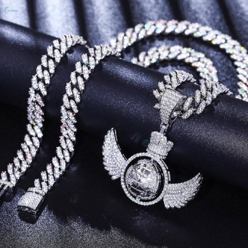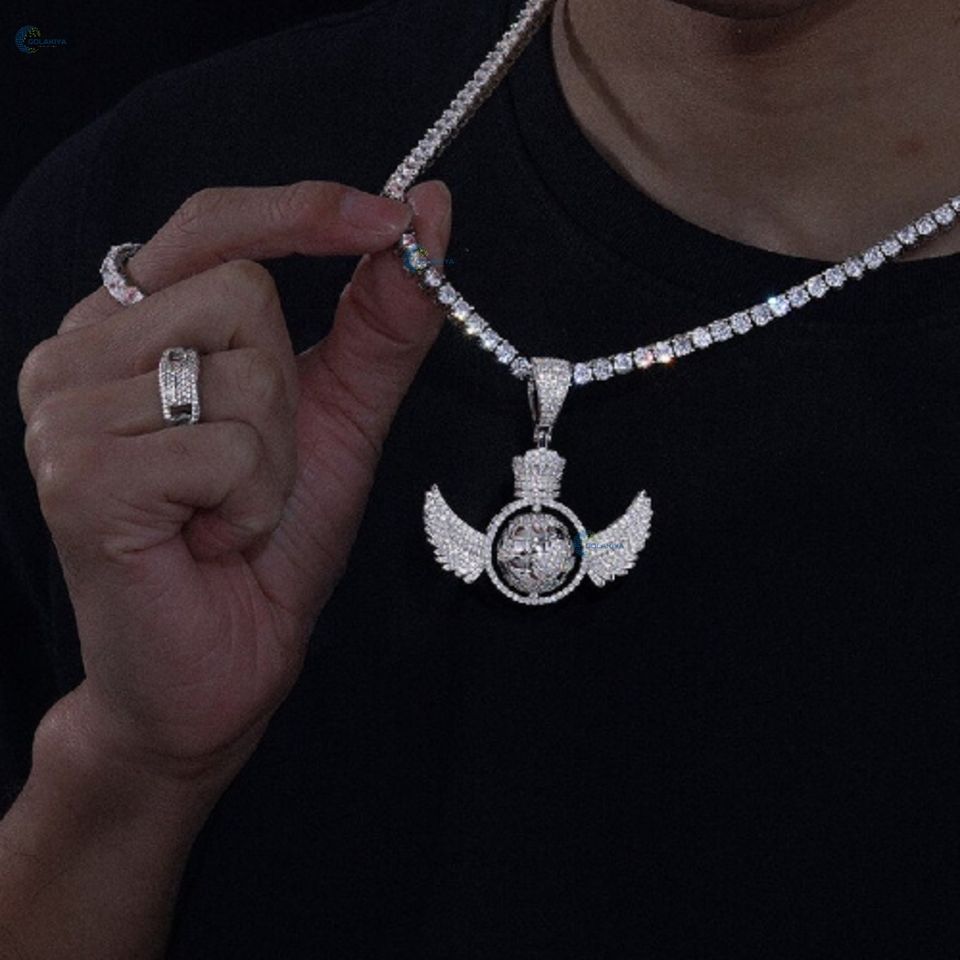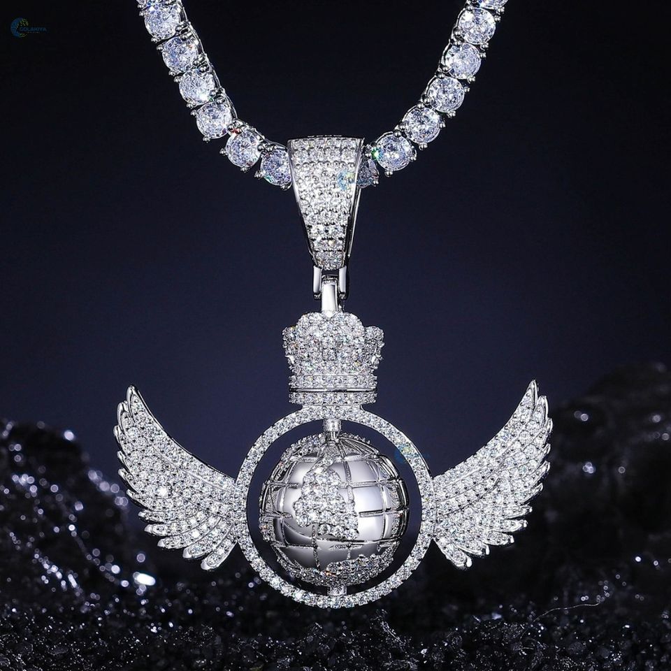 Luxury Fully Iced Out Angel Wings Globe Pendant Men’s Hip Hop Lab Grown Diamond Necklace