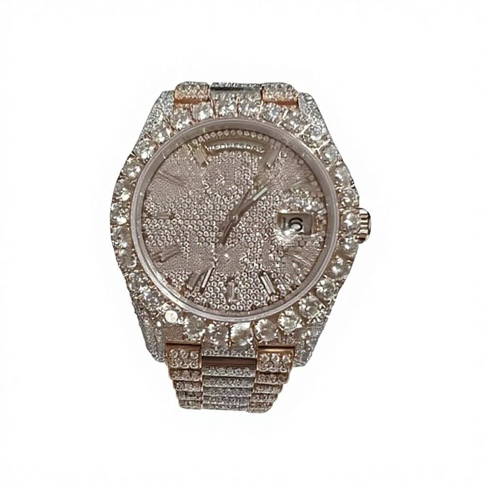 Luxury Fully Iced Out Diamond Sapphire Crystal Stainless Steel Automatic Mechanical Moissanite Custom Numrals Dial Watch