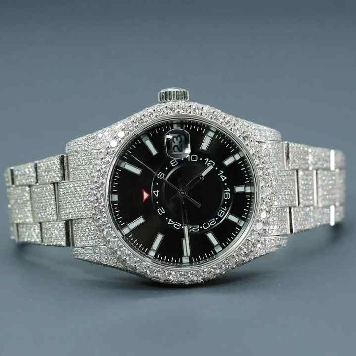 Luxury Fully Iced Out Moissanite GMT Watch Black Dial Hip Hop Diamond Look Stainless Steel Custom