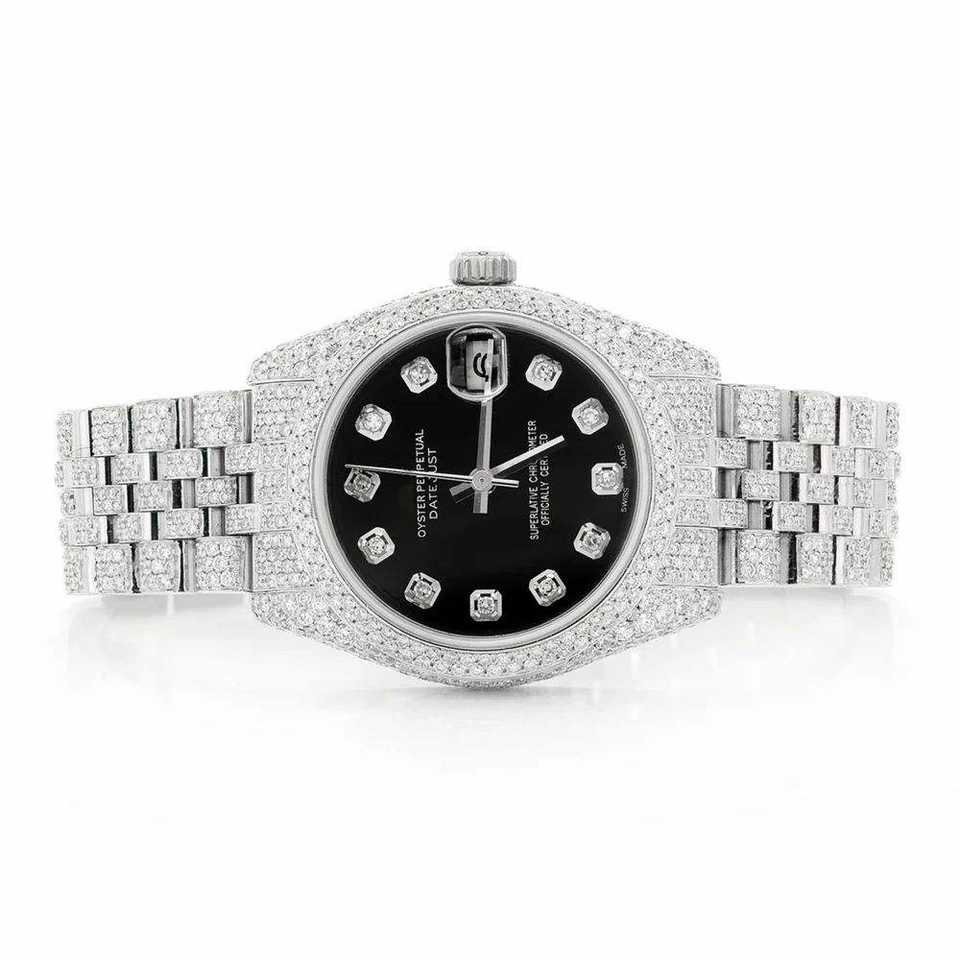 Luxury Fully Iced Out Moissanite Watch Black Dial Automatic Mechanical Diamond Watch Stainless Steel