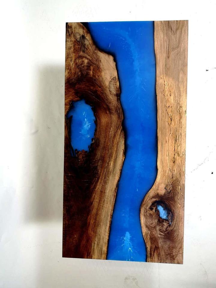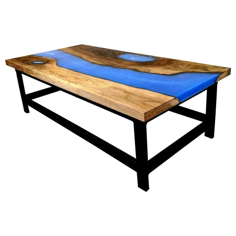 Luxury Furniture Modern Solid Wood Live Edge Coffee Table with Blue Epoxy Resin and Metal Legs