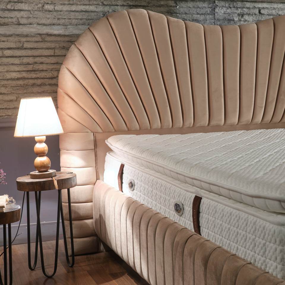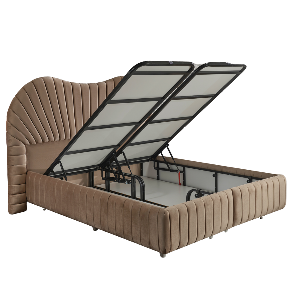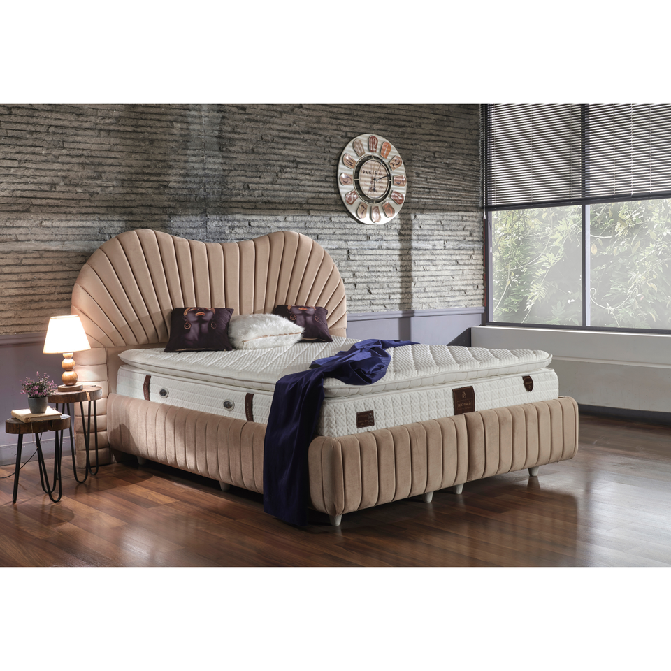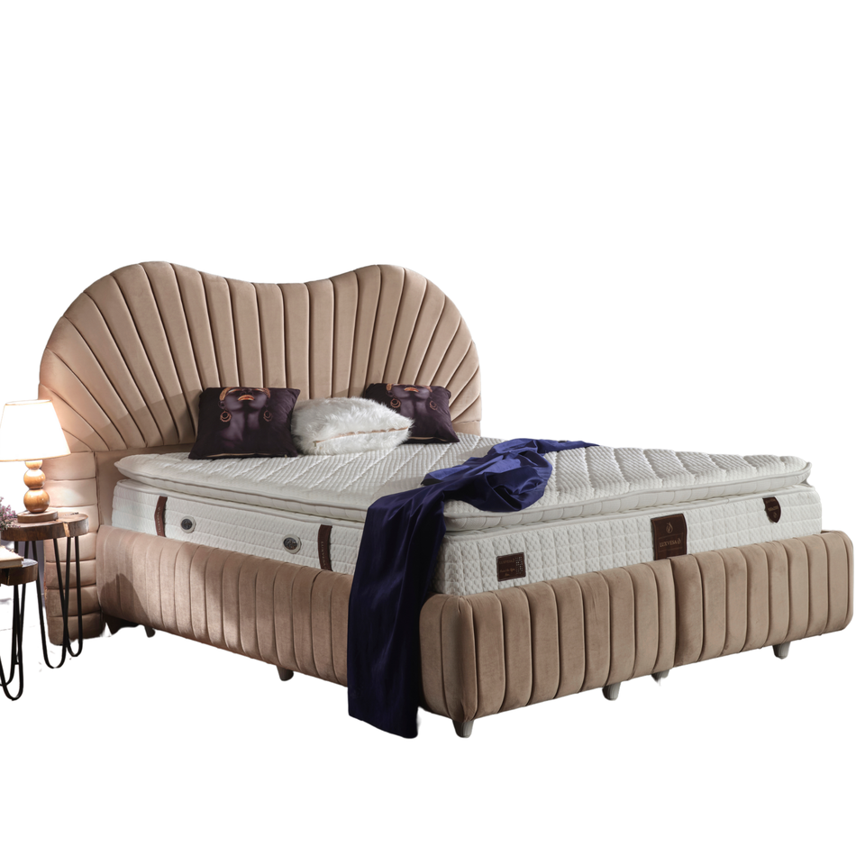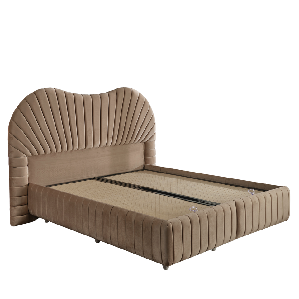 GOKMEN Luxury Bedroom Set Easy Assembly Velvet Wood Metal Bed Base with Headboard & Side Rails for Villa Farmhouse Home Hotel