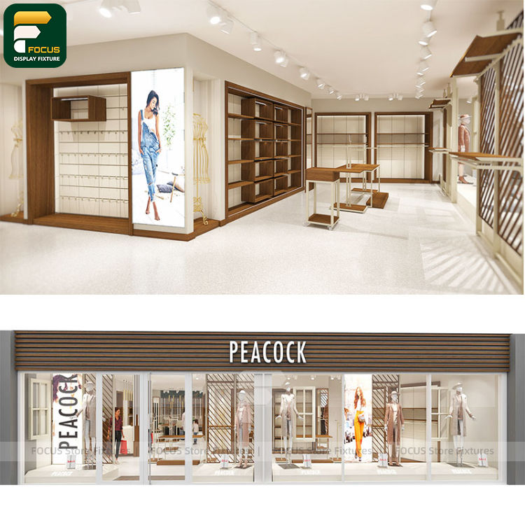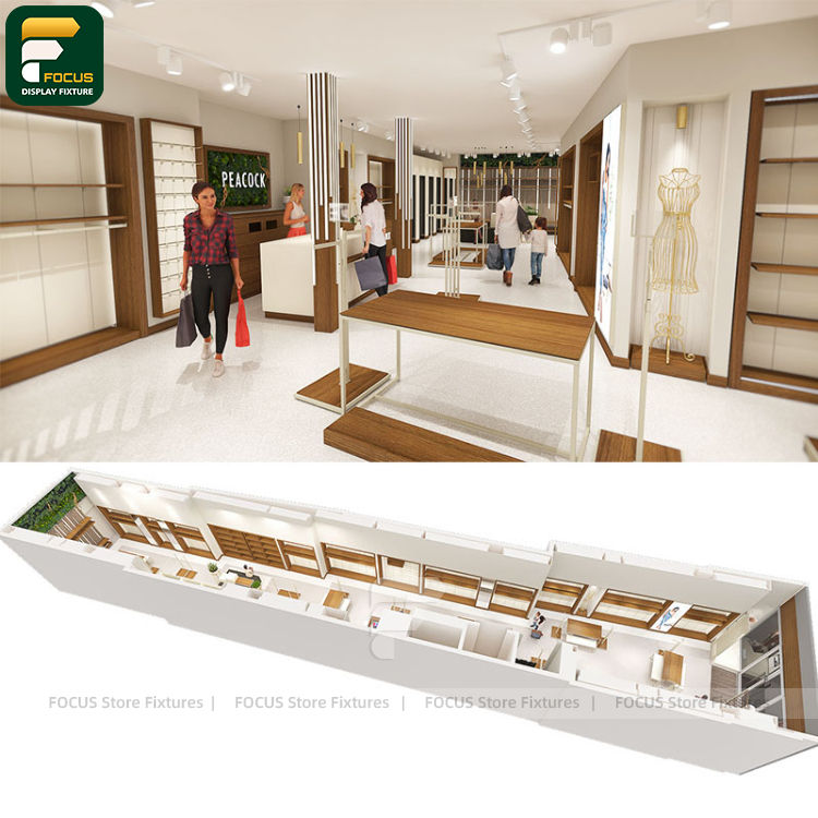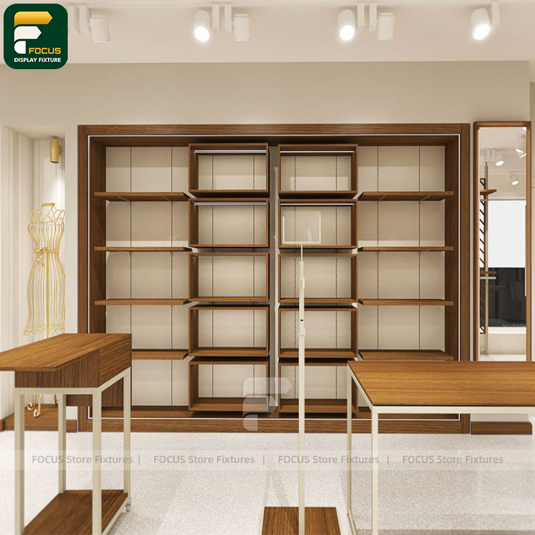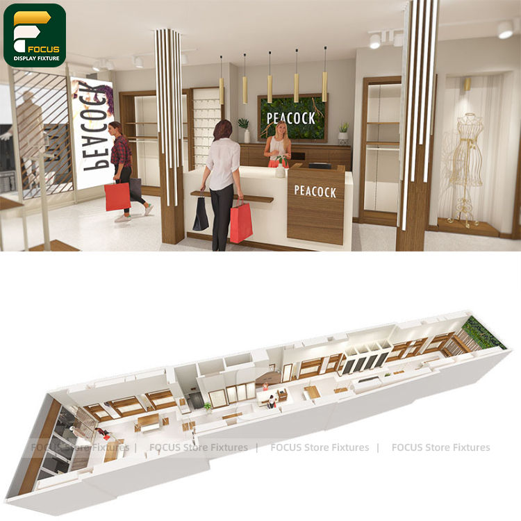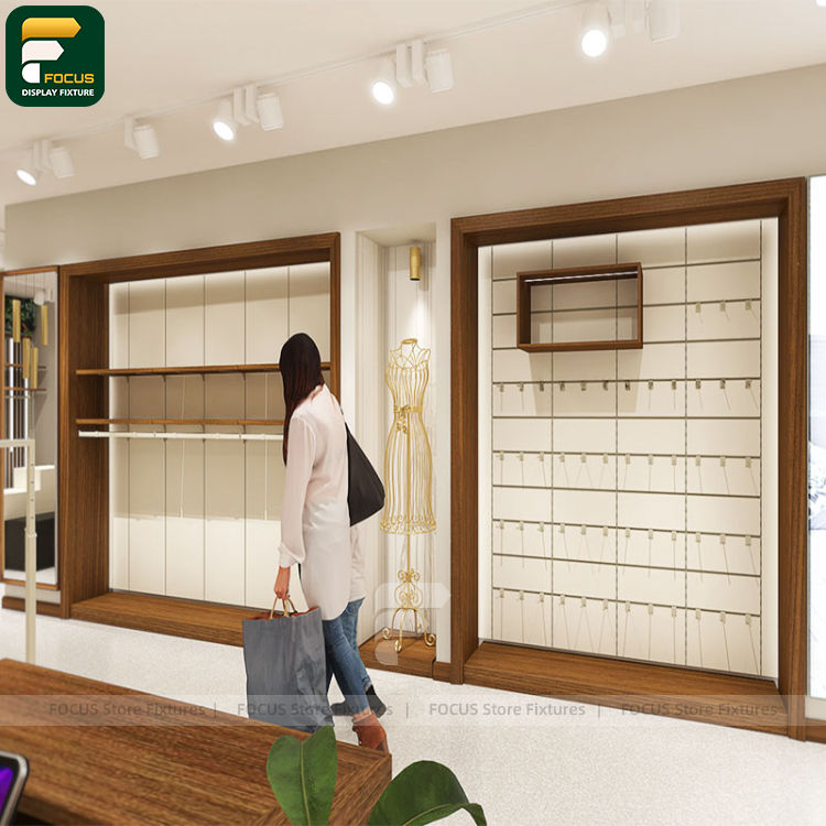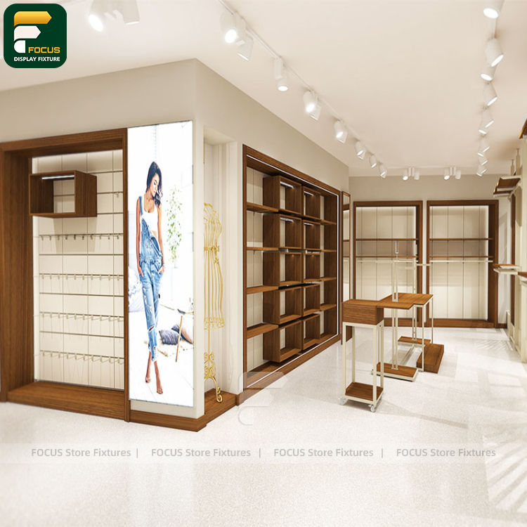 Luxury Garment Store Display Rack Clothing Wall Cabinet Cashwrap Counter Shelf Boutique Lighting Unit