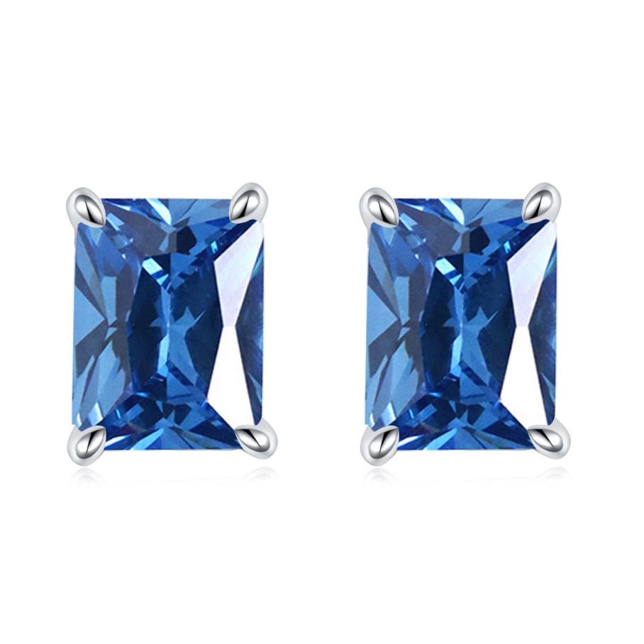 Luxury Sterling Silver Rhodium Plated Zircon Rectangular Stud Earrings for Women-Anniversary Gift