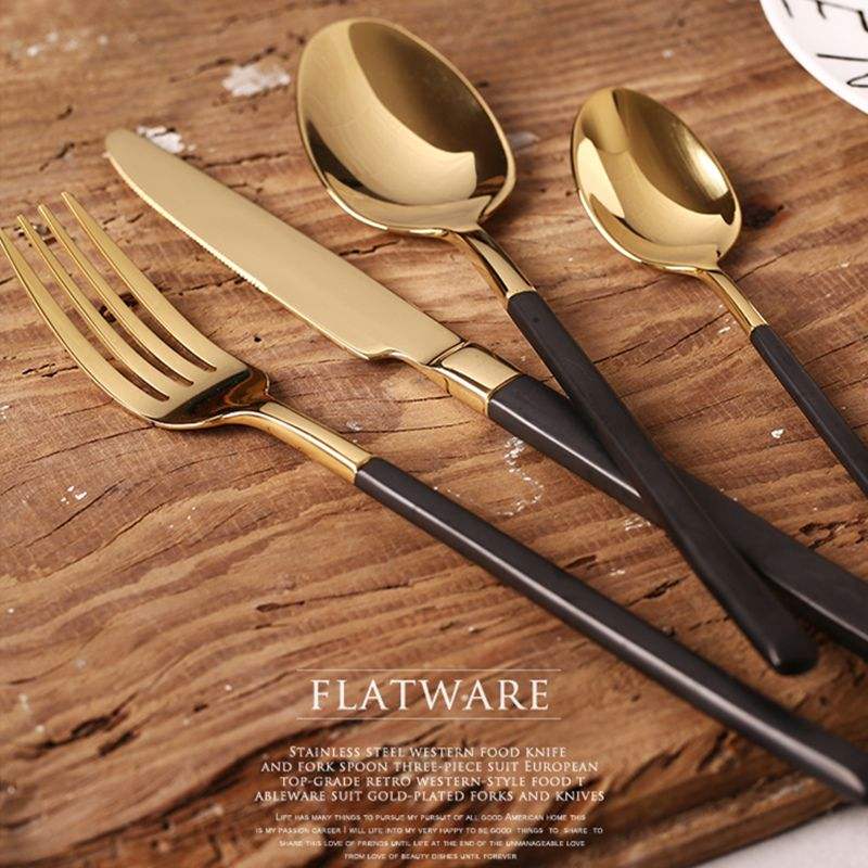 Luxury Gift Box Cutlery Set Black Handle Gold Finish Elegant Dining Style for Premium Gifting