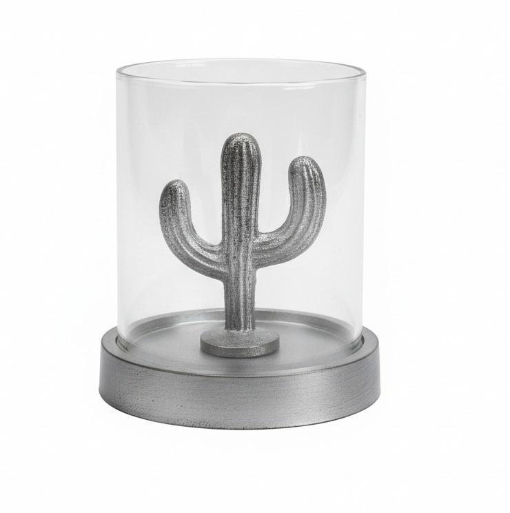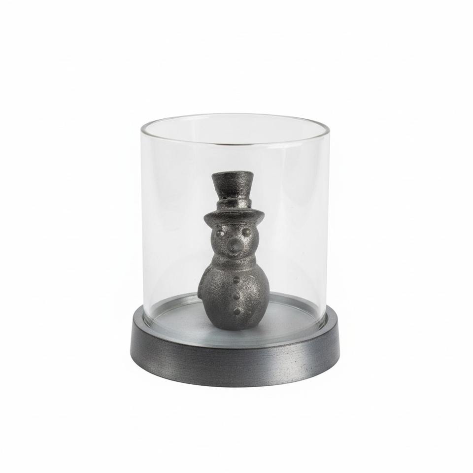 Luxury Glass Candle Holder with Silver Snowman Design Decorative Tabletop Lantern for Home Living Room Decor Christmas Decor