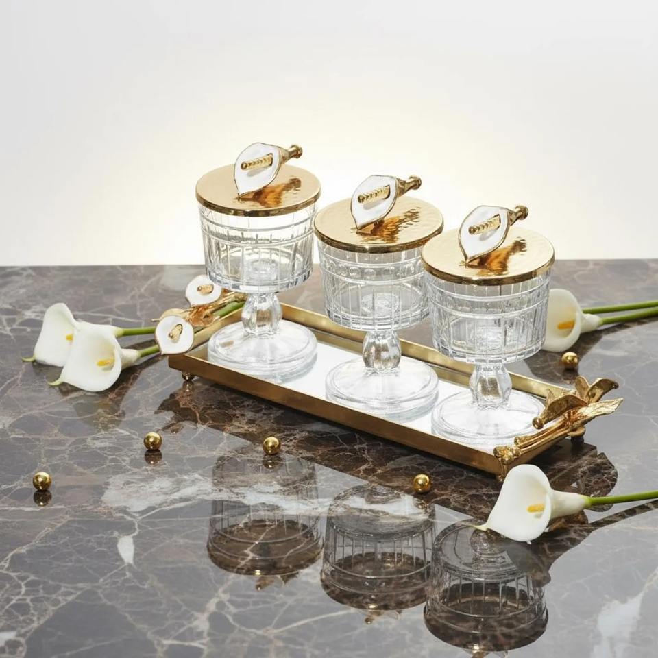 Luxury Glass Container Set With Gold Lid And Tray Ideal For Serving Dry Fruits To Guests In A Stylish Way And Useful For Gifting