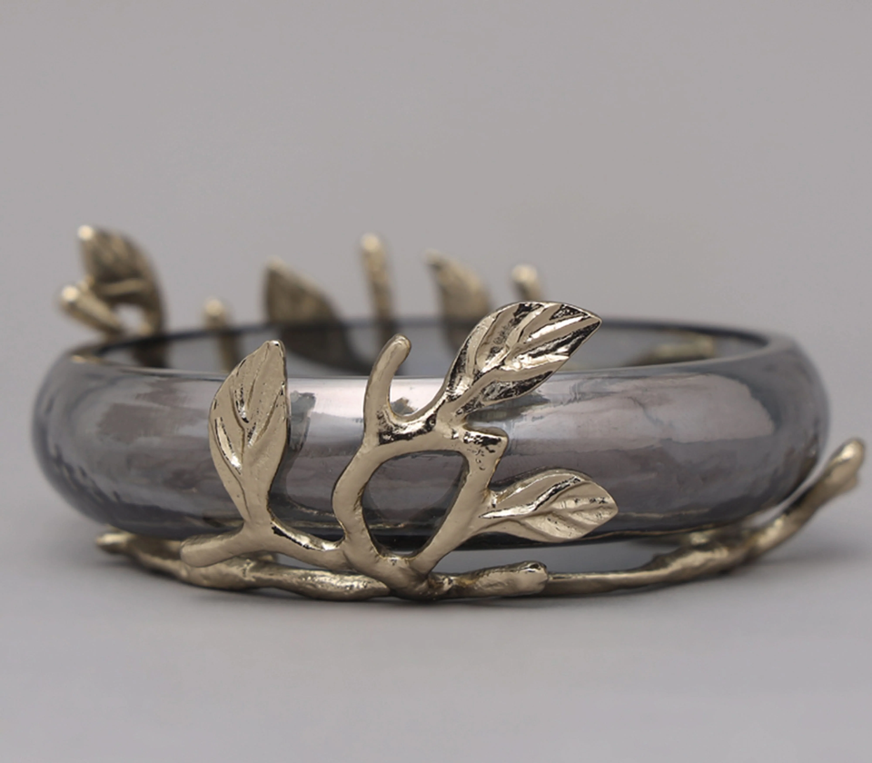 Luxury Glass Toothbrush Holder with Brass Leaf Design Elegant Bathroom Accessory Organizer Toothbrush Stand for Vanity