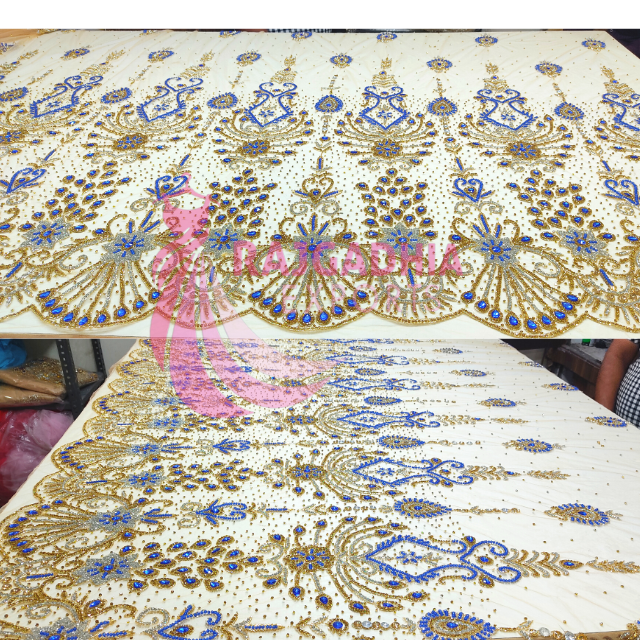 Luxury Gold African 3D Lace Fabric Embroidered with Sequins and Pearls Nigerian Bridal Wedding Couture Fabric Wholesale