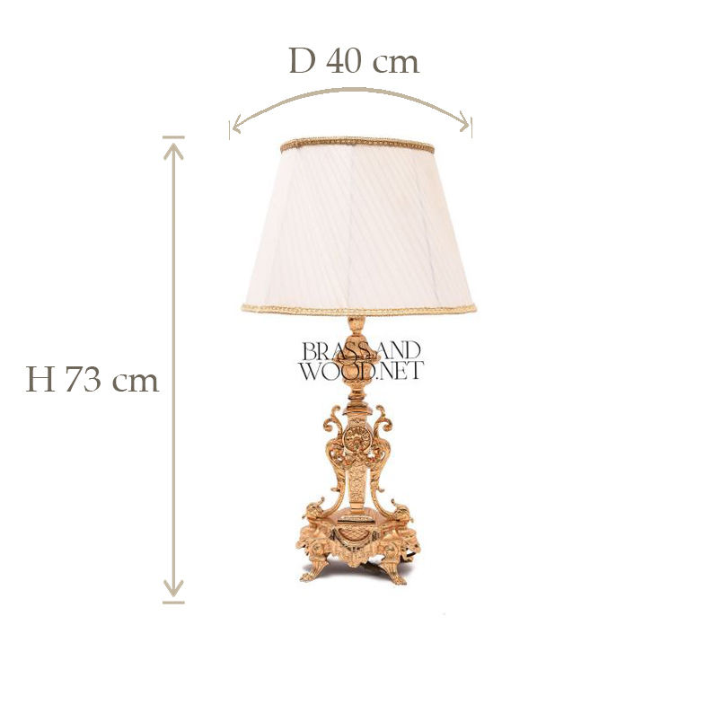 Luxury Gold Brass Table Lamp with Classic Fabric Shade Handmade Ornate Decorative Lighting Accent