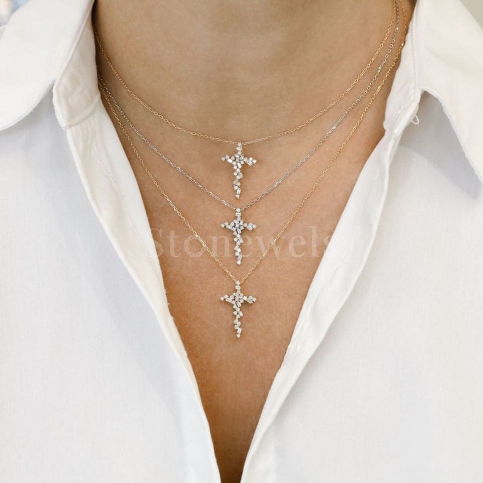 Luxury Gold Cross Cluster Diamond Necklace from India Modern Statement Jewelry Symbolizing Strength & Unity for Men & Women