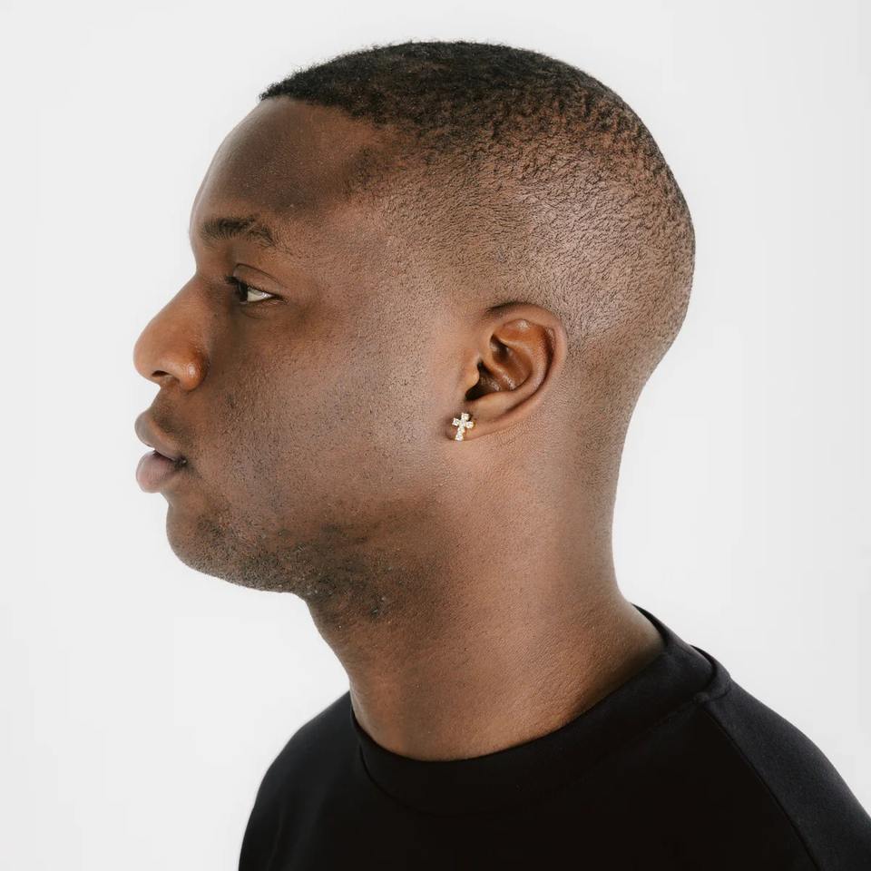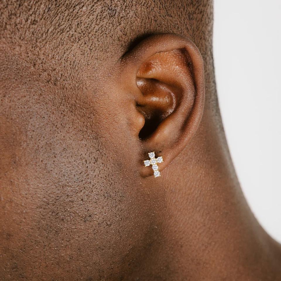 Luxury Gold Cross Stud Earrings for Men and Women Iced Out Round Cut Diamond Style Hip Hop Fashion Jewelry