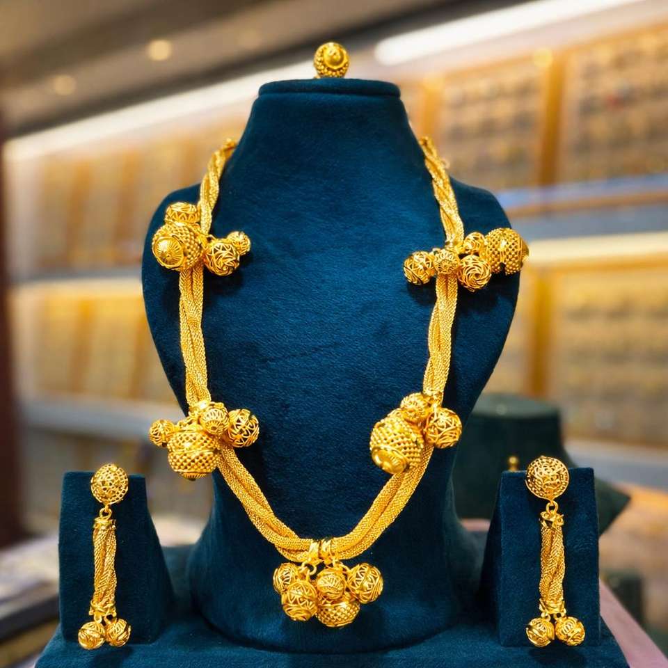 Luxury Gold Finish Bridal Choker Necklace Set with Red Enamel Work & Matching Earrings 63163