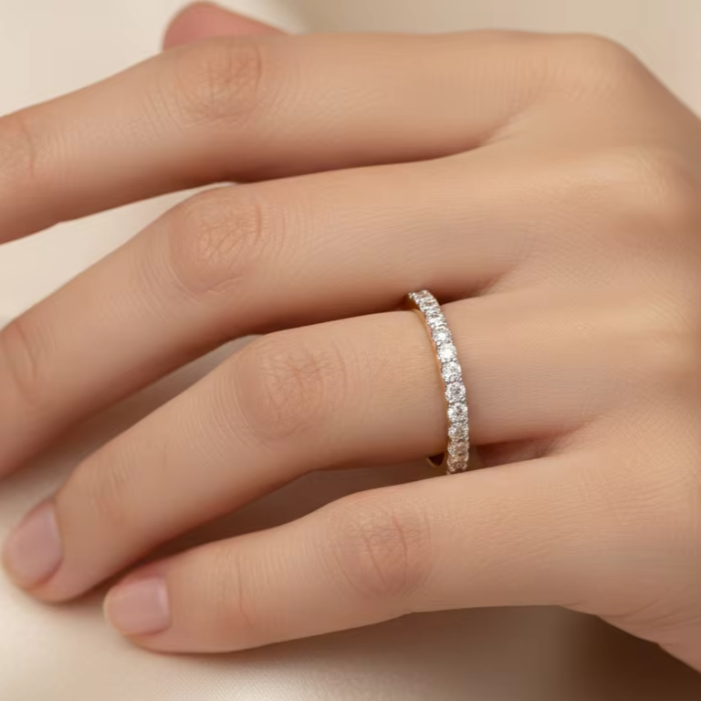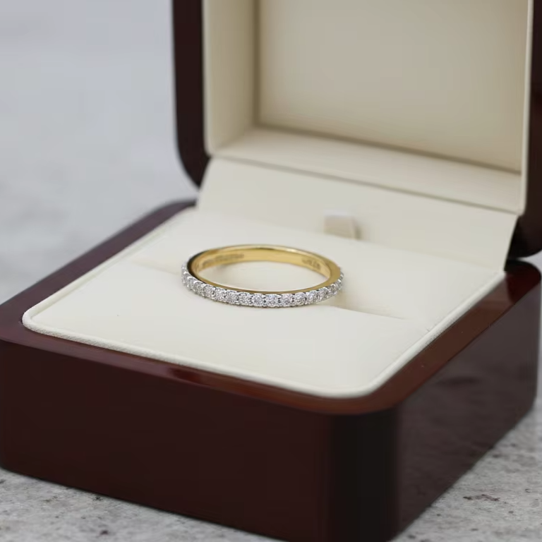 Luxury Gold Half Eternity Ring Trendy Fine Jewelry Wedding Band for Men Engagement Anniversary Gift