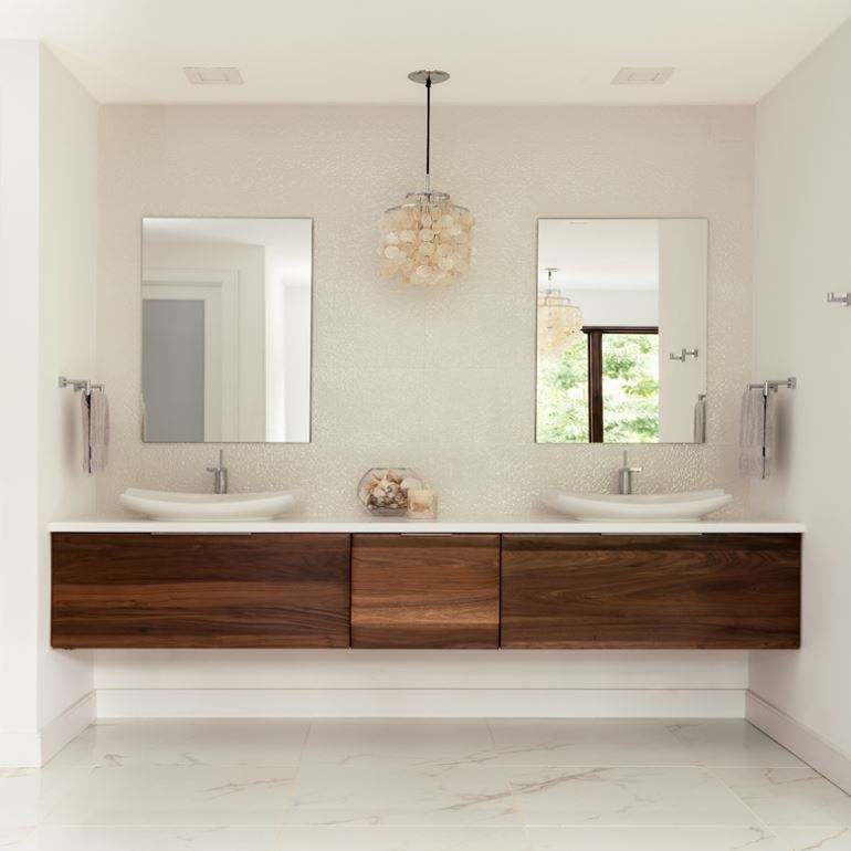 Luxury Gold Hotel Furniture Floating Wall Mounted Sintered Stone Top Solid Wood Bathroom Vanity Cabinet Set