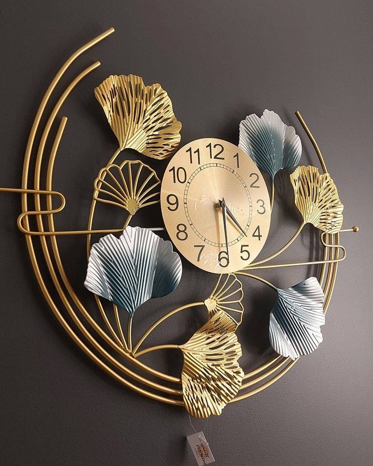 Luxury Gold Metal Floral Wall Clock with Artistic Leaf Design and Decorative Round Frame for Elegant Living Room