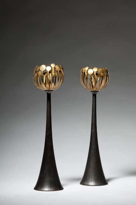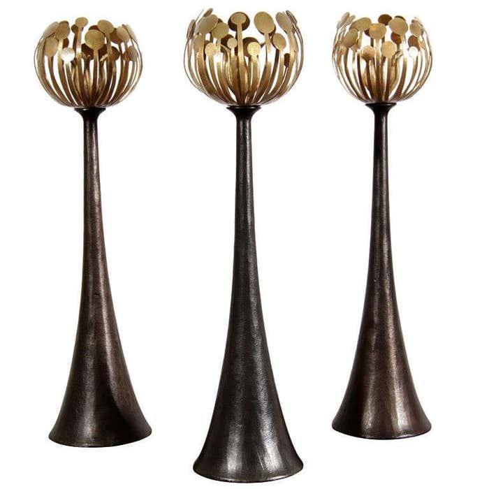 Luxury Gold Metal Lotus Flower Pillar Candle Holder Set Vintage Iron Floral Pedestal Stand Wedding Table Centerpiece Decor