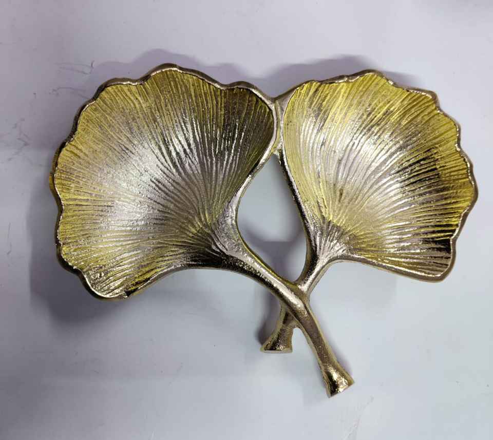 Luxury Gold Metal Serving Tray with Flower Handle in Modern Design Used As Table Decorative