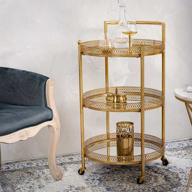 Luxury Gold Metal Serving Trolley for Home Catering Hotel Restaurant Kitchen Food Serving Trolley Wine & Glasses Storage Holders
