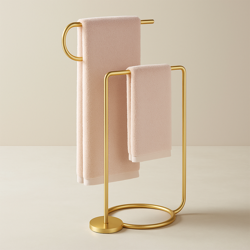 Luxury Gold Metal Towel Rack with Premium White Round Marble Base Elegant Modern Freestanding Towel Stand for Stylish Bathroom