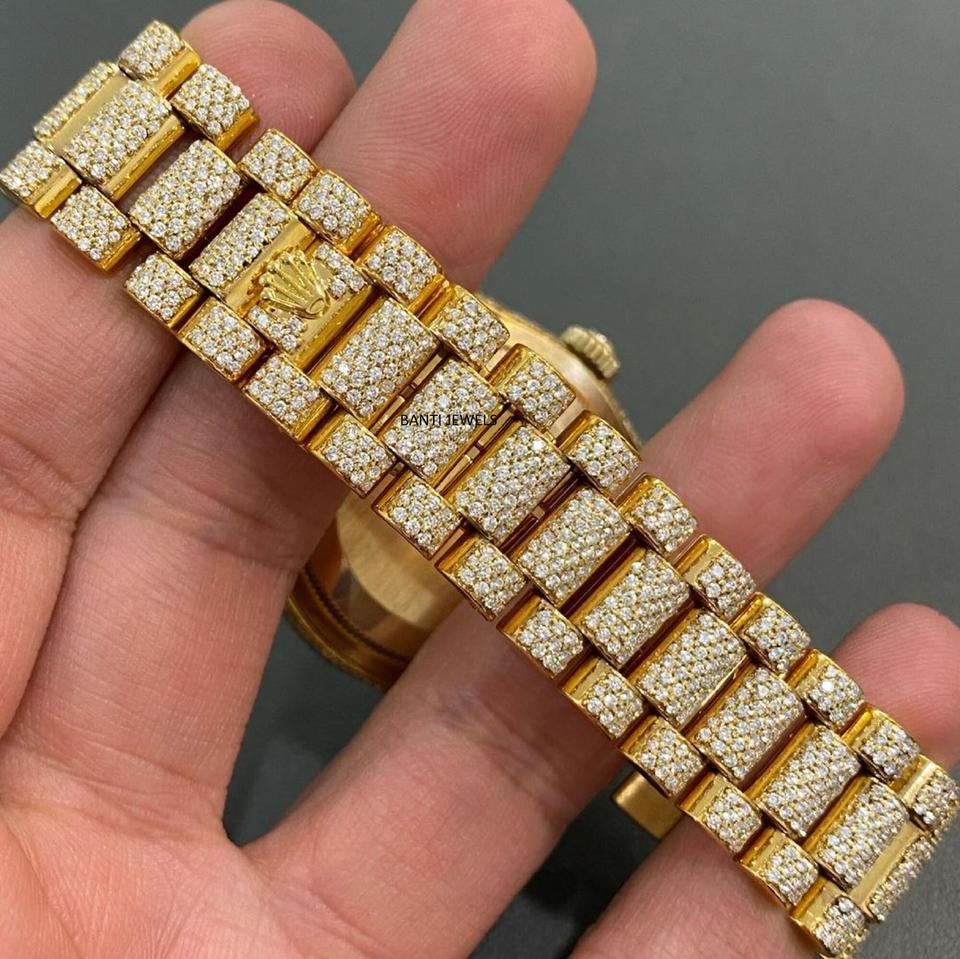 Luxury Gold Moissanite Iced Out Hip Hop Watch Black Dial Roman Numerals Diamond Bustdown Wristwatch