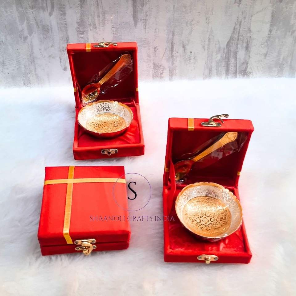 Product Name:Gold Plated Brass Bowl Set with Oval Tray and Spoons