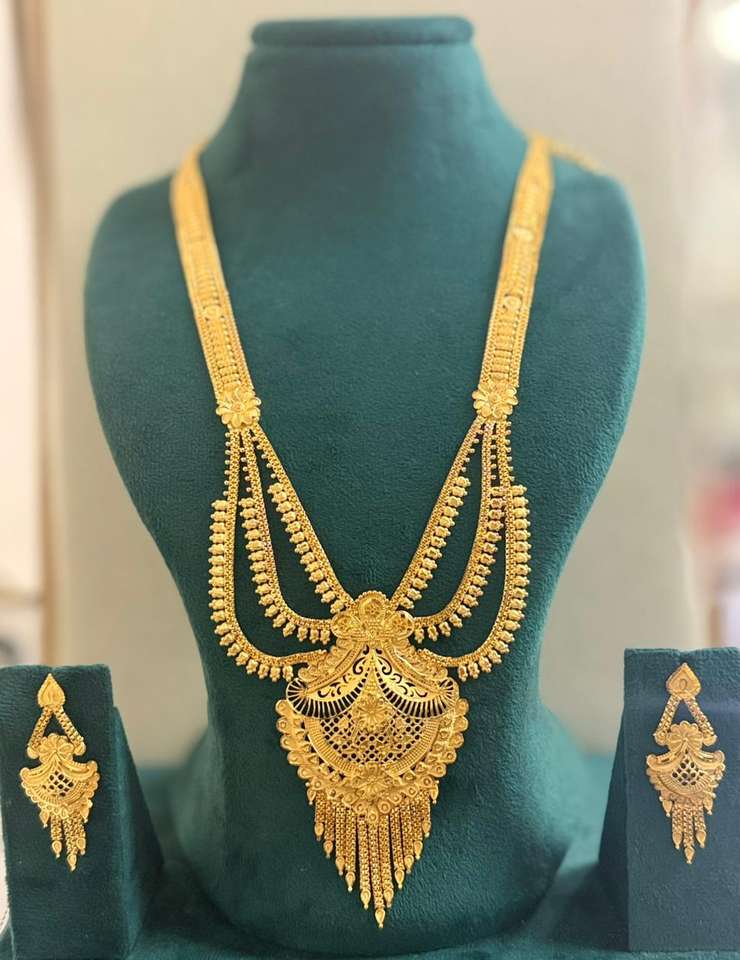 Luxury Gold Plated Vintage Floral Pendant Necklace Set Long Tassel Earrings Premium Handcrafted Wedding Jewelry Model 63042