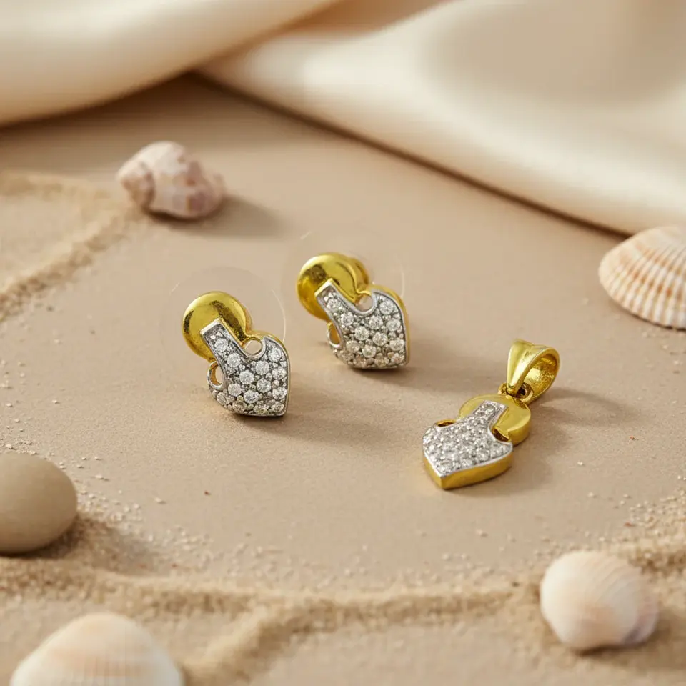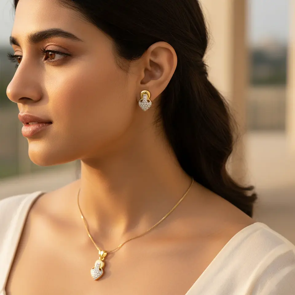 Luxury Gold Plating Crystal Stud Earrings & Pendant Set Women's Fine Jewelry with Pearl Stainless Steel & Copper Gift