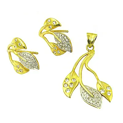 Luxury Gold Plating Leaf Pendant Earrings Set Stainless Steel Copper Crystal Jewelry Pearl Diamond Star Pattern for Women's Gift