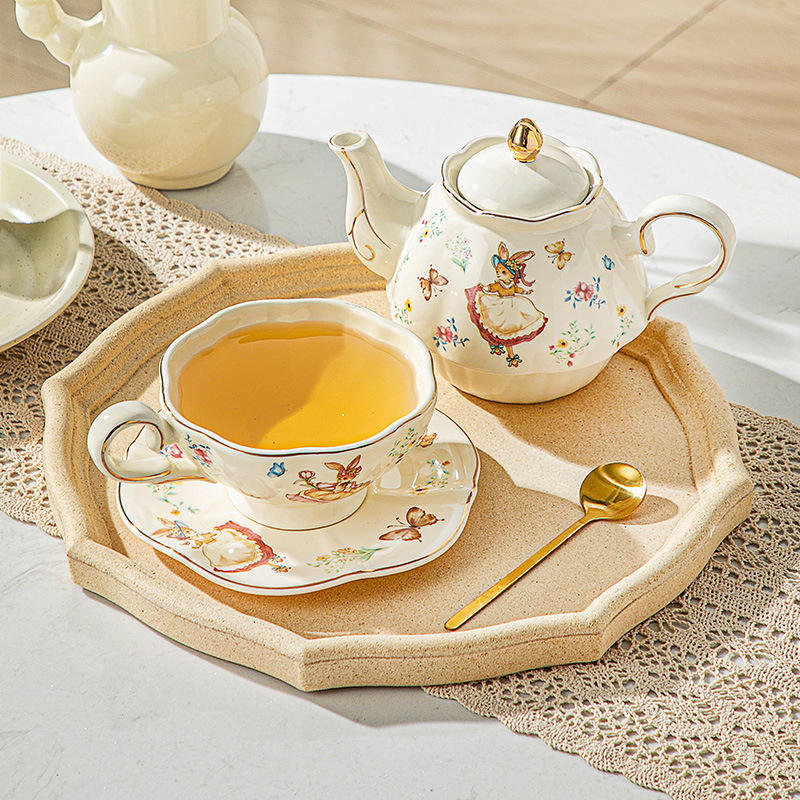 Luxury Gold Rim Tea for One Set Porcelain Teapot and Cup Saucer Set British Tea Gift Set for Women