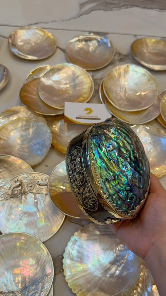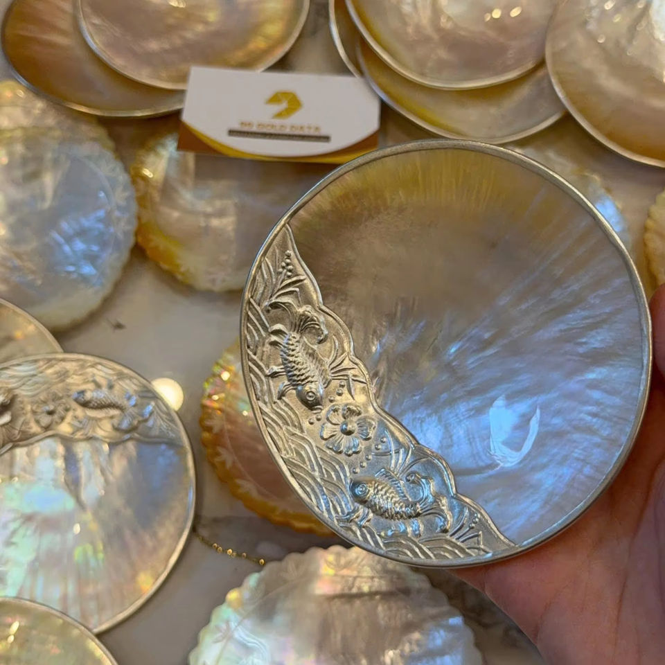 Luxury Gold/Silver Inlay Shell Dish Natural Iridescent Mother of Pearl Exquisite 8cm 10cm Fine Dining Plate Handcrafted MOP Tray
