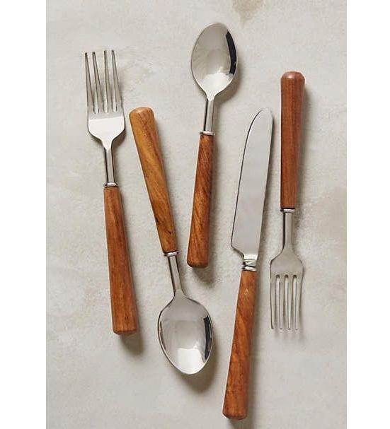 Luxury Gold Stainless Steel Cutlery with Knife Fork & Spoon Flatware and Natural Wood Handles