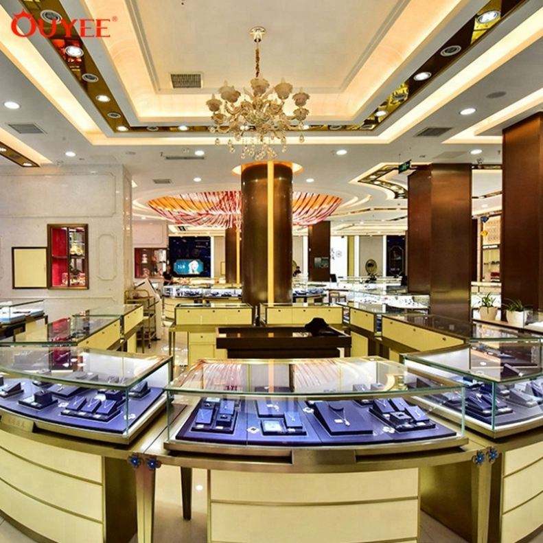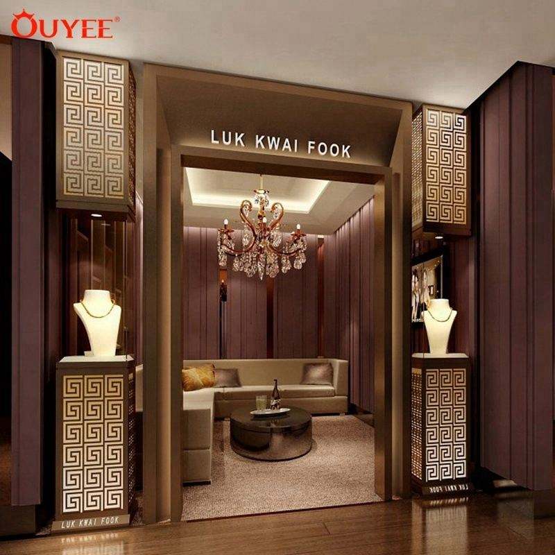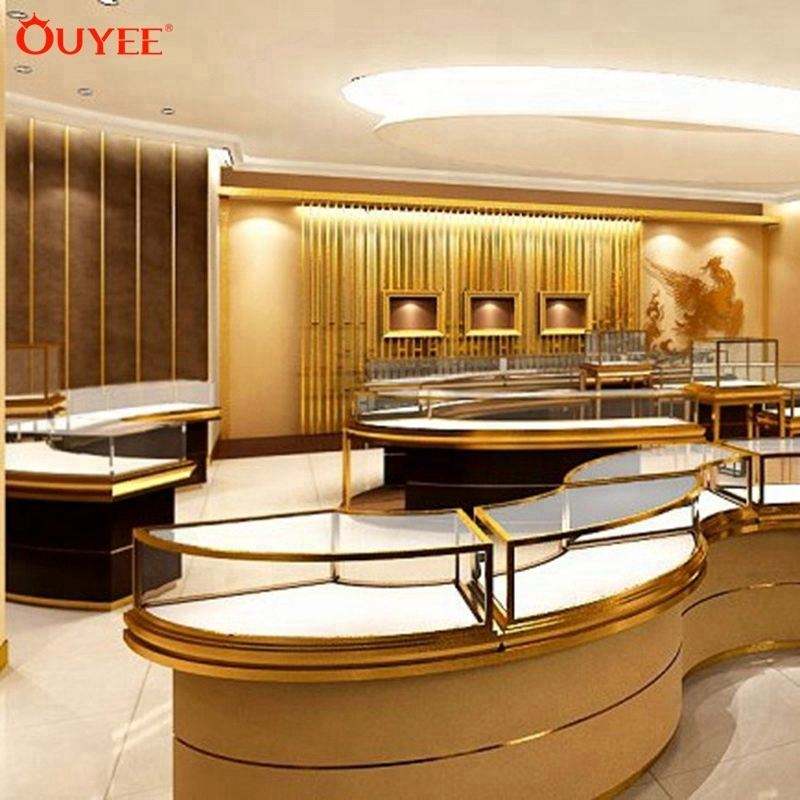 Luxury Gold Stainless Steel Jewelry Showcase Interior Displays Jewellery Shop Counter Design