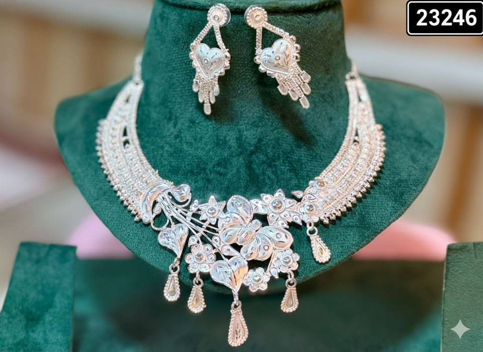 Luxury Gold-Tone Vintage Floral Zircon Choker Necklace Set with Heart Drop Earrings for Women Wedding & Party 23245