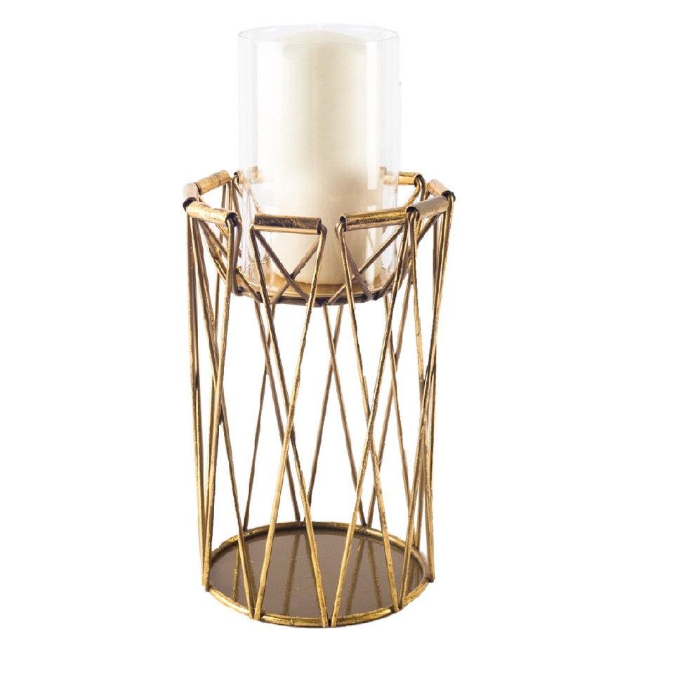 Luxury Gold Wire Candle Holder Stand With Glass Decor New Arrival Luxury Metal Hurricane Candle Lantern Indoor Gold Finished