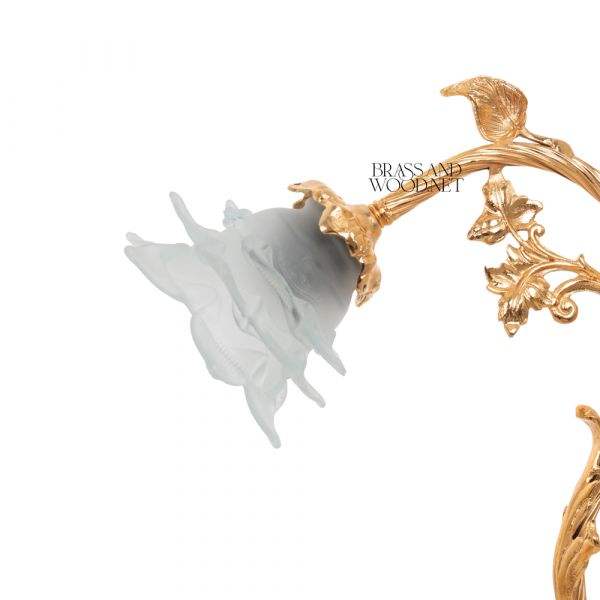 "Luxury Golden Brass Decorative Table Lamp with Artistic Floral Glass Shade for Classic Living Room